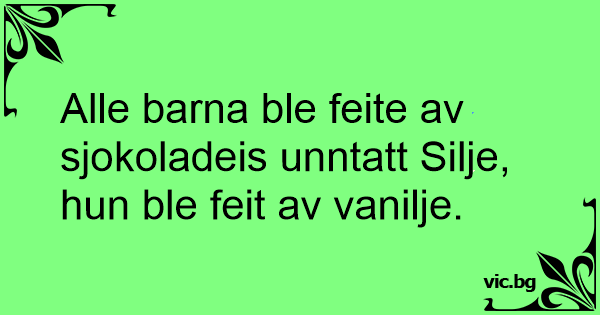 Alle barna ble feite av sjokoladeis unntatt Silje, hun ble feit av vanilje.
