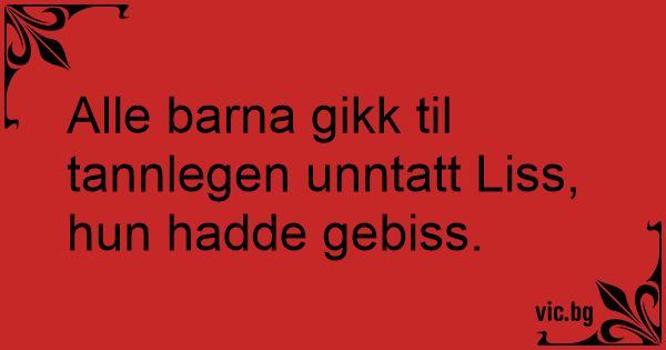Alle barna gikk til tannlegen unntatt Liss, hun hadde gebiss.