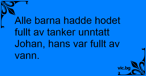 Alle barna hadde hodet fullt av tanker unntatt Johan, hans var fullt av vann.
