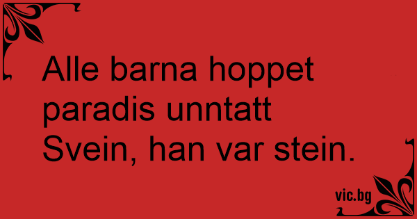 Alle barna hoppet paradis unntatt Svein, han var stein.