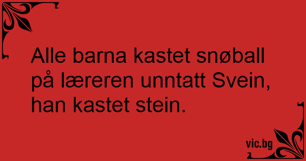 Alle barna kastet snøball på læreren unntatt Svein, han kastet stein.
