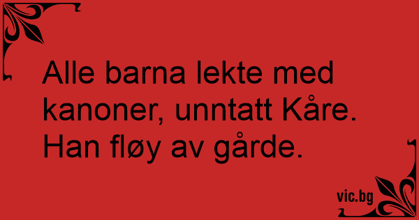 Alle barna lekte med kanoner, unntatt Kåre. Han fløy av gårde.