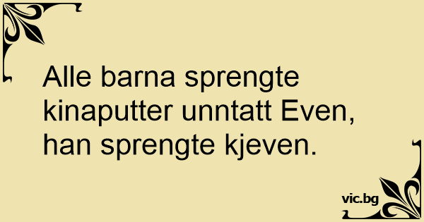 Alle barna sprengte kinaputter unntatt Even, han sprengte kjeven.