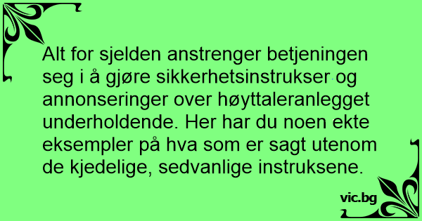 Alt for sjelden anstrenger betjeningen seg i å gjøre sikkerhetsinstrukser og annonseringer over høyttaleranlegget underholdende. Her har du noen ekte eksempler på hva som er sagt utenom de kjedelige, sedvanlige instruksene.