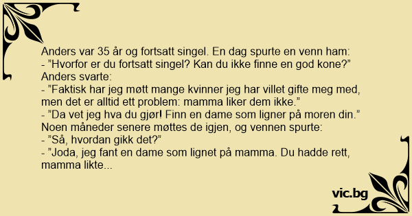 - ”Faktisk har jeg møtt mange kvinner jeg har villet gifte meg med, men det er alltid ett problem: mamma liker dem ikke.”