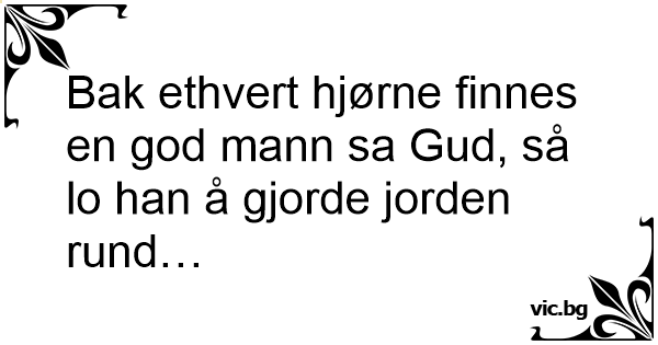 Bak ethvert hjørne finnes en god mann sa Gud, så lo han å gjorde jorden rund…