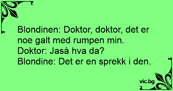 Blondinen: Doktor, doktor, det er noe galt med rumpen min.