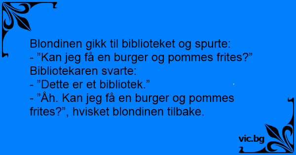 - ”Åh. Kan jeg få en burger og pommes frites?”, hvisket blondinen tilbake.