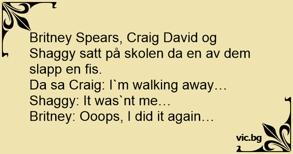 Britney Spears, Craig David og Shaggy satt på skolen da en av dem slapp en fis.