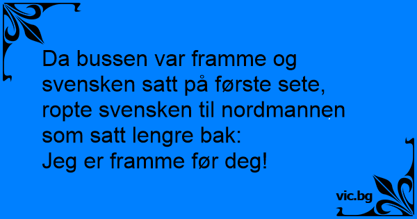 Da bussen var framme og svensken satt på første sete, ropte svensken til nordmannen som satt lengre bak: