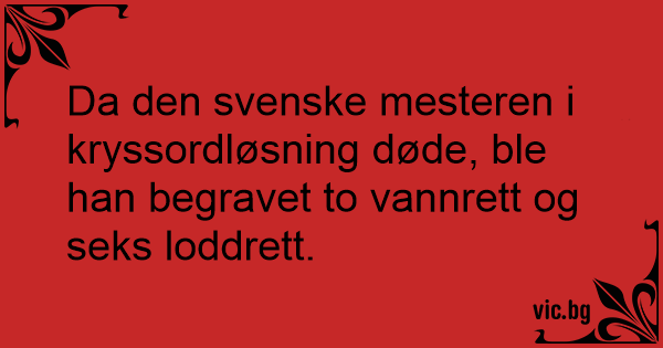 Da den svenske mesteren i kryssordløsning døde, ble han begravet to vannrett og sекs loddrett.