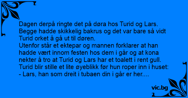 Dagen derpå ringte det på døra hos Turid og Lars. Begge hadde skikkelig bakrus og det var bare så vidt Turid orket å gå ut til døren.