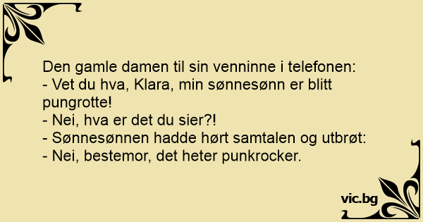 - Vet du hva, Klara, min sønnesønn er blitt pungrotte!