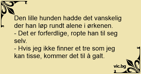 - Hvis jeg ikke finner et tre som jeg kan tisse, kommer det til å galt.
