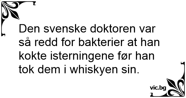 Den svenske doktoren var så redd for bakterier at han kokte isterningene før han tok dem i whiskyen sin.