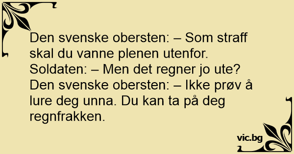 Den svenske obersten: – Som straff skal du vanne plenen utenfor.