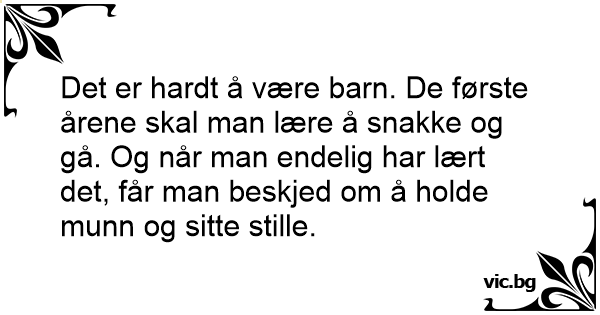 Det er hardt å være barn. De første årene skal man lære å snakke og gå. Og når man endelig har lært det, får man beskjed om å holde munn og sitte stille.