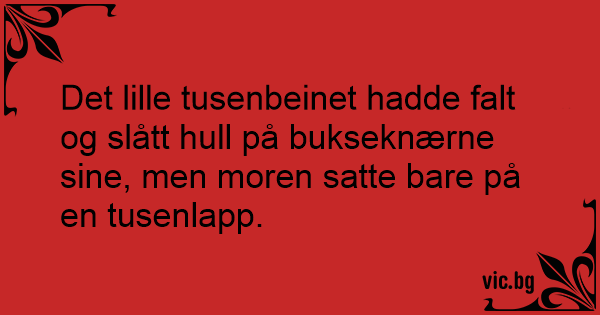 Det lille tusenbeinet hadde falt og slått hull på bukseknærne sine, men moren satte bare på en tusenlapp.