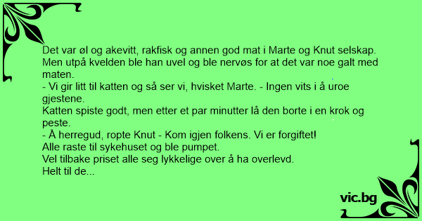 - Å herregud, ropte Knut - Kom igjen folkens. Vi er forgiftet!