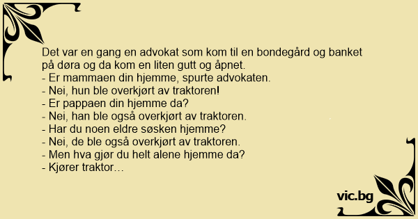 Det var en gang en advokat som kom til en bondegård og banket på døra og da kom en liten gutt og åpnet.