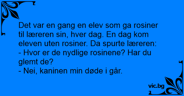 Det var en gang en elev som ga rosiner til læreren sin, hver dag. En dag kom eleven uten rosiner. Da spurte læreren:
