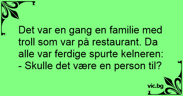 Det var en gang en familie med troll som var på restaurant. Da alle var ferdige spurte kelneren: