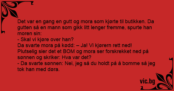 Det var en gang en gutt og mora som kjørte til butikken. Da gutten så en mann som gikk litt lenger fremme, spurte han moren sin:
