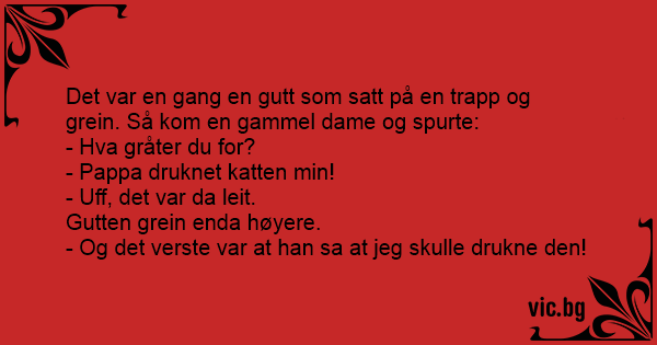 Det var en gang en gutt som satt på en trapp og grein. Så kom en gammel dame og spurte: