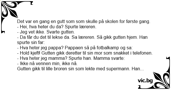 - Supermann! Supermann! Svarte gutten sikkert. Rektoren ble tilkalt og kom til gutten med det samme og spurte provosert: