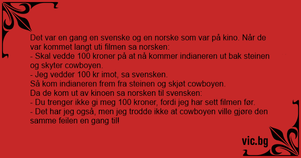- Skal vedde 100 kroner på at nå kommer indianeren ut bak steinen og skyter cowboyen.