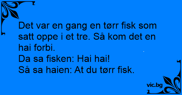 Det var en gang en tørr fisk som satt oppe i et tre. Så kom det en hai forbi.