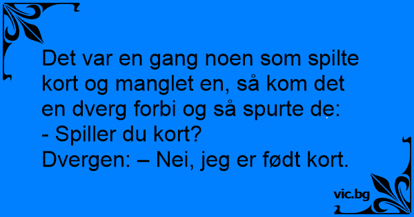 Det var en gang noen som spilte kort og manglet en, så kom det en dverg forbi og så spurte de: