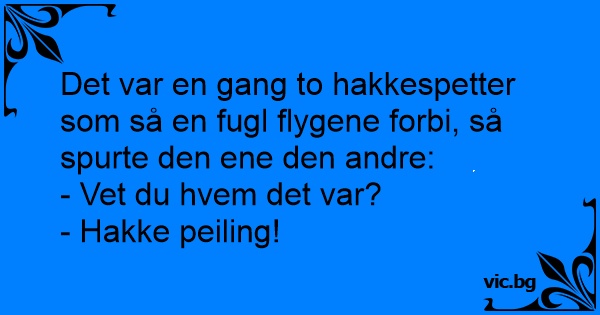 Det var en gang to hakkespetter som så en fugl flygene forbi, så spurte den ene den andre: