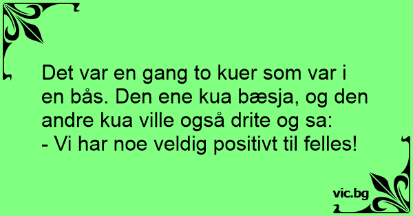 Det var en gang to kuer som var i en bås. Den ene kua bæsja, og den andre kua ville også drite og sa: