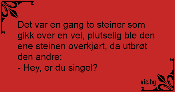 Det var en gang to steiner som gikk over en vei, plutselig ble den ene steinen overkjørt, da utbrøt den andre: