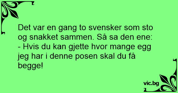 Det var en gang to svensker som sto og snakket sammen. Så sa den ene: