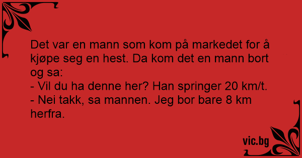 Det var en mann som kom på markedet for å kjøpe seg en hest. Da kom det en mann bort og sa:
