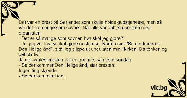 Det var en prest på Sørlandet som skulle holde gudstjeneste, men så var det så mange som sovnet. Når alle var gått, sa presten med organisten:
