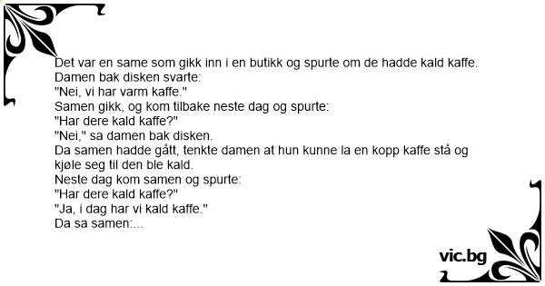 Det var en same som gikk inn i en butikk og spurte om de hadde kald kaffe. Damen bak disken svarte: