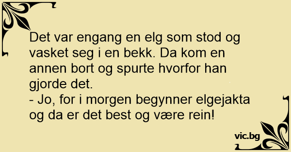 Det var engang en elg som stod og vasket seg i en bekk. Da kom en annen bort og spurte hvorfor han gjorde det.