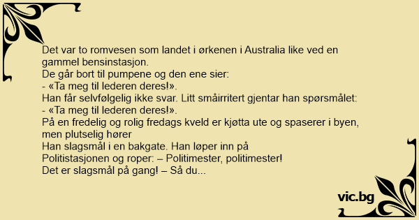 Det var to romvesen som landet i ørkenen i Australia like ved en gammel bensinstasjon.