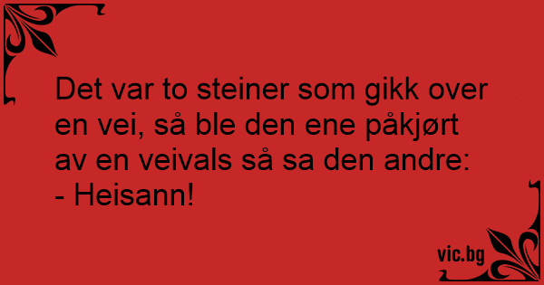 Det var to steiner som gikk over en vei, så ble den ene påkjørt av en veivals så sa den andre: