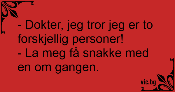- Dokter, jeg tror jeg er to forskjellig personer!