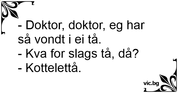 - Doktor, doktor, eg har så vondt i ei tå.
