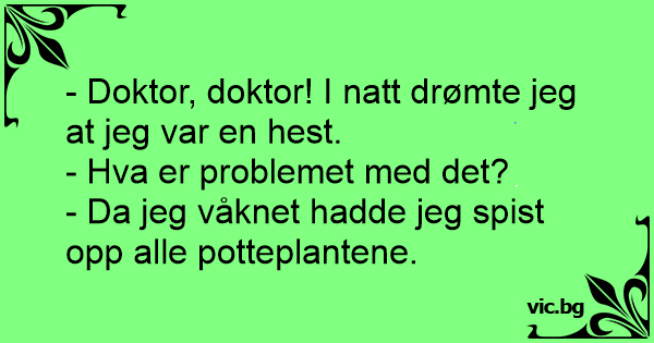 - Doktor, doktor! I natt drømte jeg at jeg var en hest.