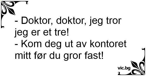 - Doktor, doktor, jeg tror jeg er et tre!