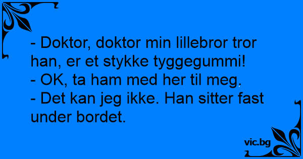 - Doktor, doktor min lillebror tror han, er et stykke tyggegummi!