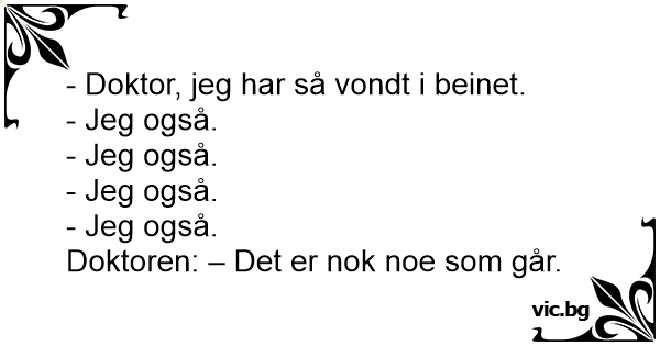 - Doktor, jeg har så vondt i beinet.