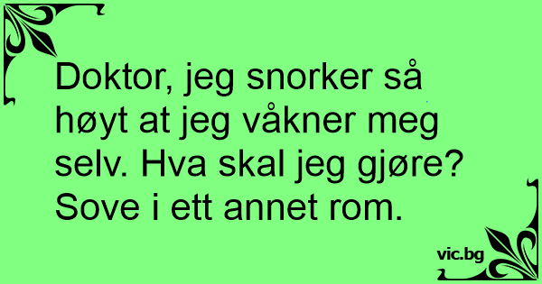 Doktor, jeg snorker så høyt at jeg våkner meg selv. Hva skal jeg gjøre? Sove i ett annet rom.