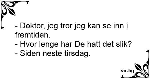 - Doktor, jeg tror jeg kan se inn i fremtiden.